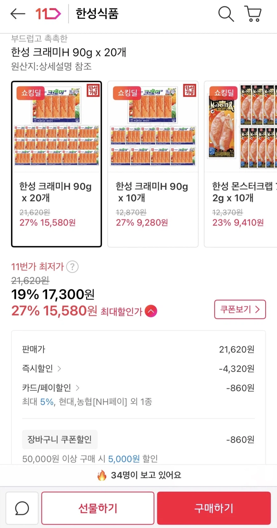 ![[11번가] 한성 크래미H 90 x 20개 15,580원](/_next/image?url=https%3A%2F%2Fi1.ruliweb.com%2Fimg%2F26%2F01%2F29%2F19c07b264cd3335.webp&w=3840&q=75)