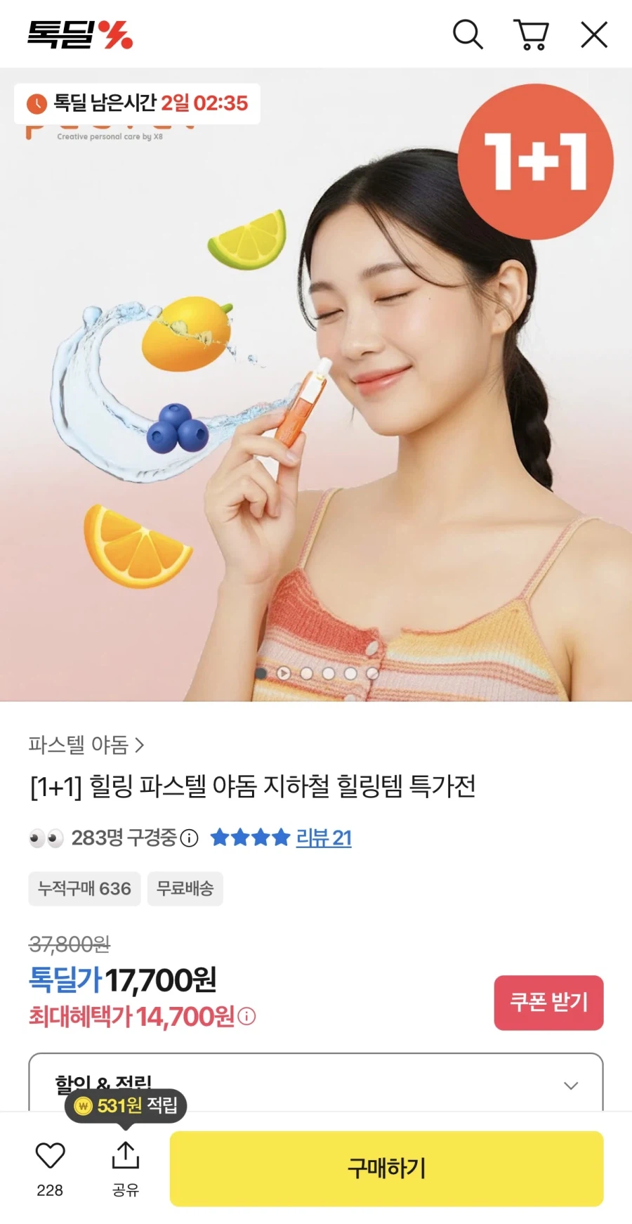 ![[카카오톡] 파스텔 야돔 6개입 1+1 (총 12개입) (14,700원/...](/_next/image?url=https%3A%2F%2Fi1.ruliweb.com%2Fimg%2F26%2F01%2F29%2F19c09c5280f7bd16.webp&w=3840&q=75)