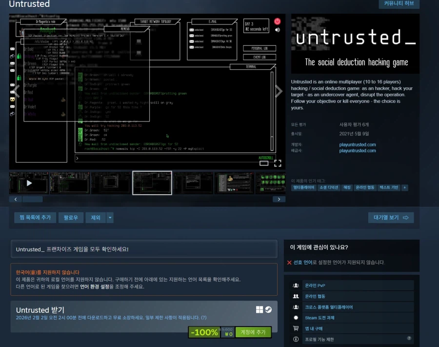 ![[스팀] Untrusted (무료)](/_next/image?url=https%3A%2F%2Fi1.ruliweb.com%2Fimg%2F26%2F01%2F30%2F19c0abc1690242da.webp&w=3840&q=75)