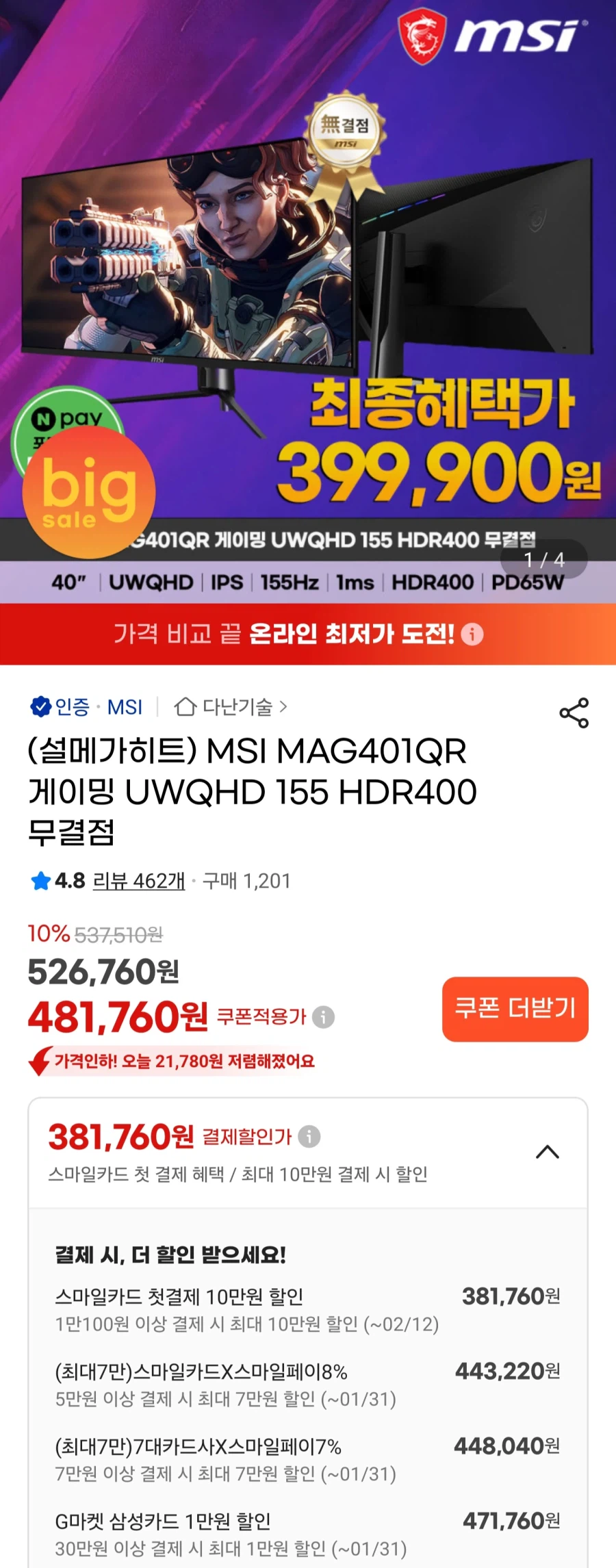![[지마켓]MSI MAG401QR UWQHD155게이밍모니터/일부카드448...](/_next/image?url=https%3A%2F%2Fi1.ruliweb.com%2Fimg%2F26%2F01%2F30%2F19c0cba20a8581443.webp&w=3840&q=75)
