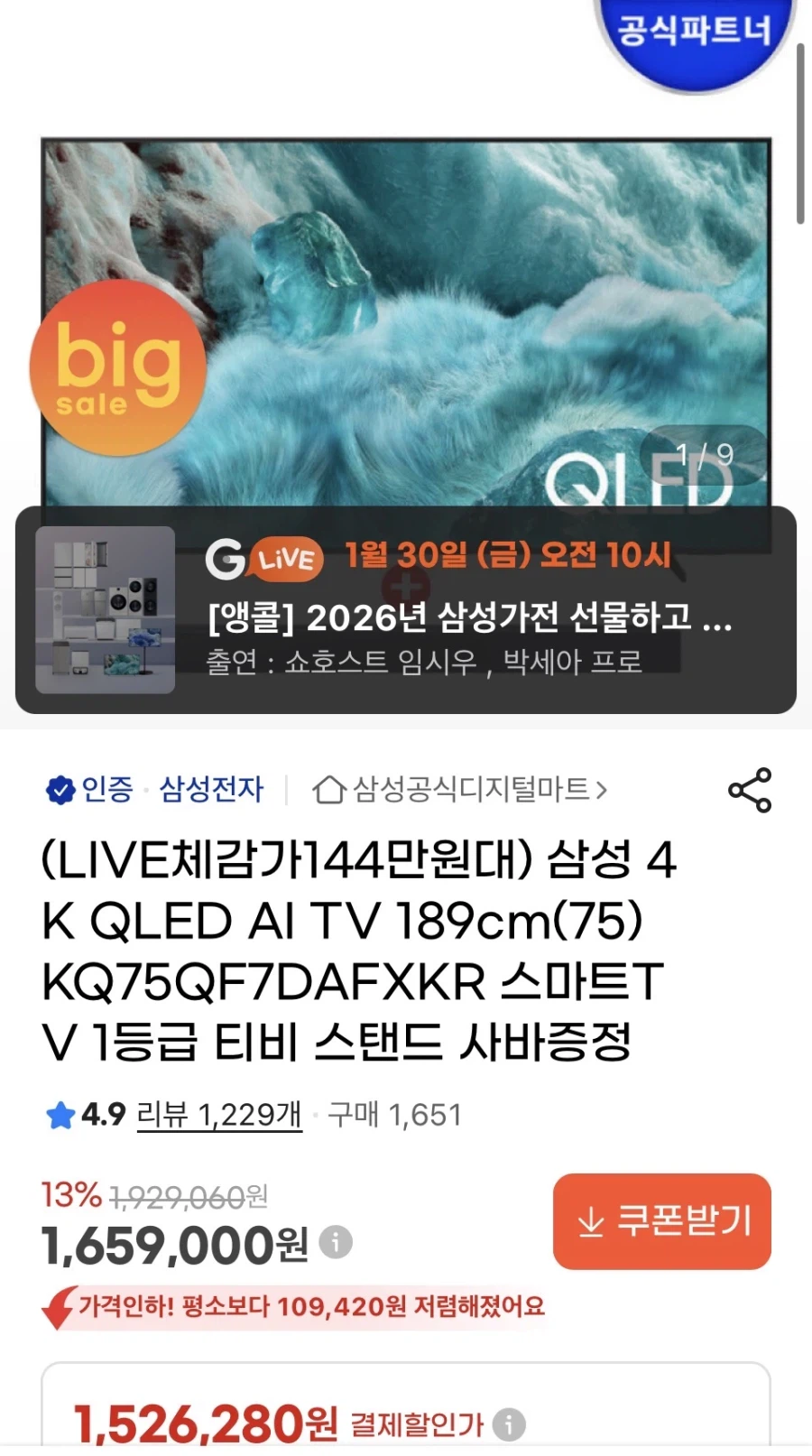 ![[G마켓] 삼성 75인치 TV+ 사운드바(카드 1,542,870원/무료)](/_next/image?url=https%3A%2F%2Fi3.ruliweb.com%2Fimg%2F26%2F01%2F29%2F19c093ce39d8cd1.webp&w=3840&q=75)