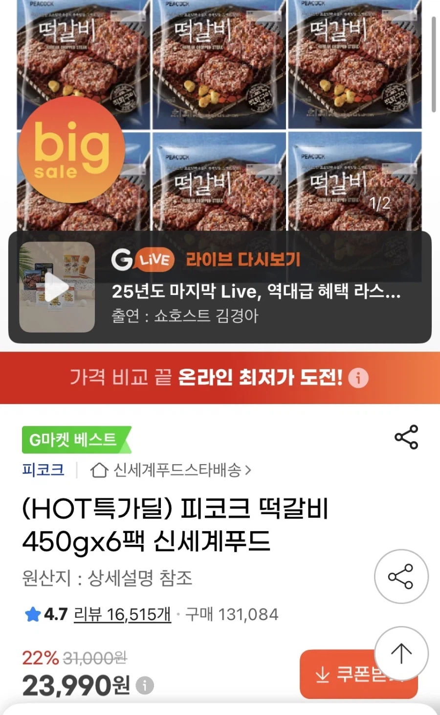 ![[g마켓] 피코크 떡갈비 450g x 6팩 (23,990원/무료)](/_next/image?url=https%3A%2F%2Fi3.ruliweb.com%2Fimg%2F26%2F01%2F29%2F19c0946dd4b8cd1.webp&w=3840&q=75)
